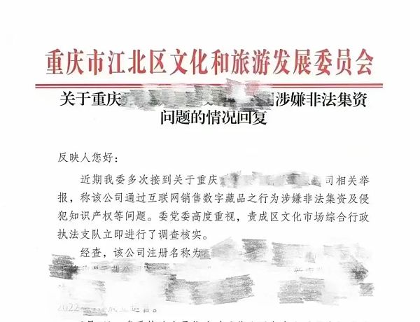 XRP/HKD-4.54%就在昨日,網傳重慶市江北區文化和旅游發展委員會公布的《關于XX數字科技有限公司涉嫌非法集資問題的情況回復》在網絡上引發頗多關注,本文無意于考察該回復的真實性,具體信息以官方的信息為準,但其中反應出的數字藏品市場備受矚目的問題仍值得思索,對于數藏平臺把握自身合規經營風險重點具有借鑒意義。