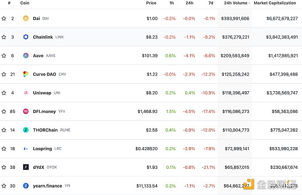 過去24小時去中心化交易所的交易量 數據來源:coingecko