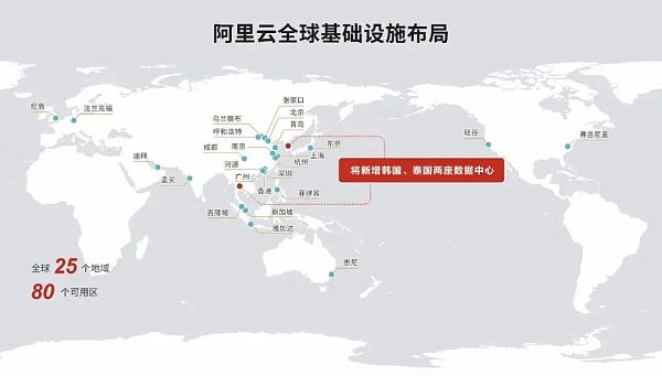 根據官網數據顯示,阿里云基礎設施目前已面向全球四大洲,開服運營25個公共云地域、80個可用區。