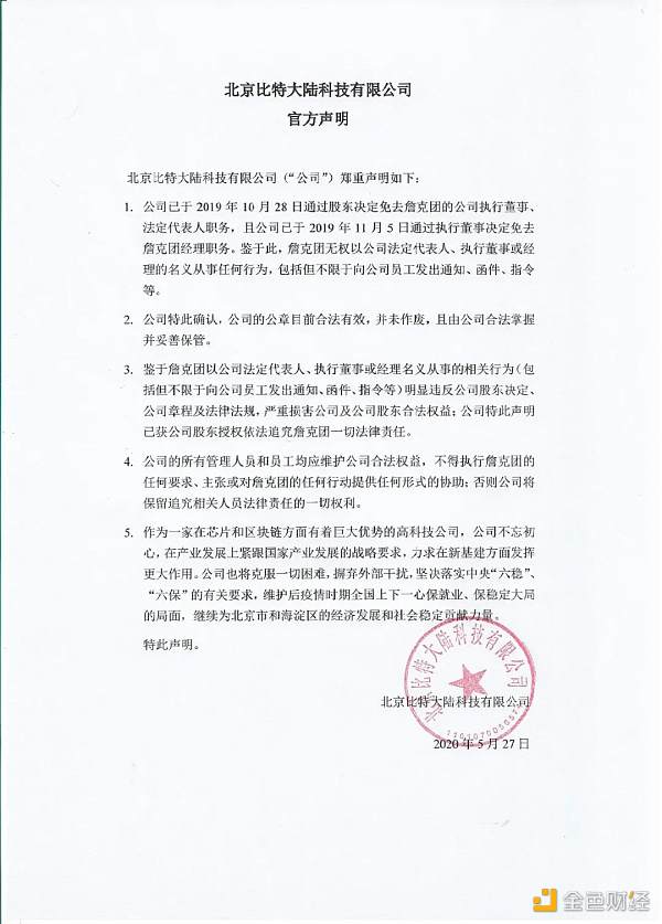 剛剛,北京比特大陸科技有限公司發布了股東聲明和官方聲明。