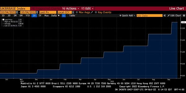 英國央行的第一次加息是在 2021 年 12 月。