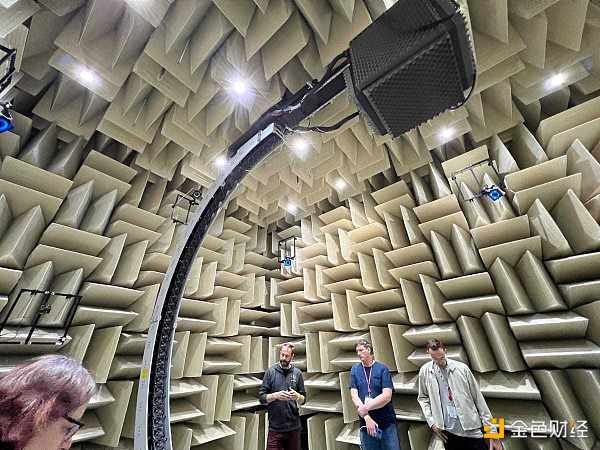 我們去參觀了該實驗室的隔音消聲室,那是一個帶有泡沫墻的懸掛空間,可以阻擋聲波的反射。對方向我們展示了一系列的音箱,那是用來幫助研究聲音是如何傳播到人的耳朵,并探索聲音在物理空間的運動方式的。之后,我們體驗了兩個展示聲音的真實感的演示。