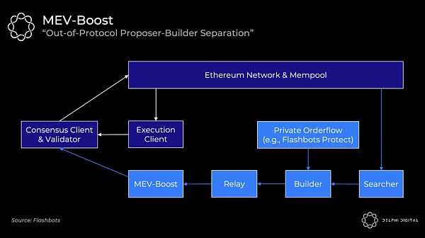 在協議中直接實現 PBS 會很復雜,這需要一些時間。與此同時,為了實現相同的目標,出現了一些協議外的解決方案,但它們有一些細微的權衡。雖然沒有正式寫入協議,但協議外的實現允許更高程度的實驗,并為最終實現提供了一個極好的測試平臺。Flashbots 創建了一個區塊構建市場,其中包含了全捆綁或無捆綁(all-or-nothing bundle)以及有條件付款。