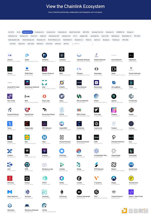 Chainlink接入了眾多頂尖的L1區塊鏈和L2擴容方案,其中包括Arbitrum、Avalanche、BNB Chain、Ethereum、Fantom、Harmony、Heco、Moonriver、Optimism、Polygon、Starkware以及xDai。