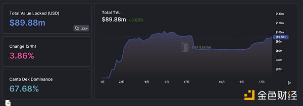 據 DeFiLlama 數據顯示,Canto TVL(總鎖定價值)為 8900 萬美金。