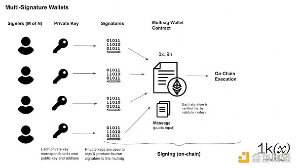多簽錢包屬于智能合約錢包,它需要M-of-N密鑰簽名才能執行交易。MPC只創建單個簽名,而不管參與簽名的密鑰分片有多少,多重簽名使用由不同私鑰生成的不同簽名來簽名交易。這使得它與現有的私鑰錢包兼容,位于Ledger或Metamask等HD錢包地址的上一層。