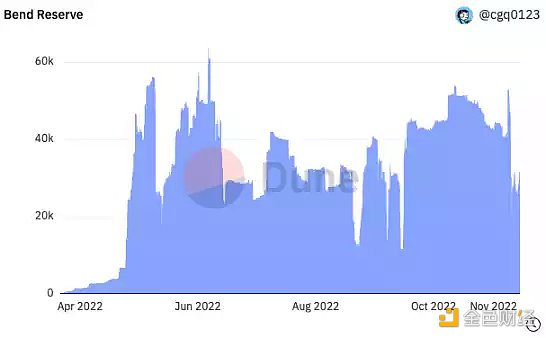 根據 Dune 的數據,截止 11 月 14 日,BendDAO 的儲備為 31387.5 WETH,在 11 月 10 日時跌至了 19848 WETH,自 11 月 8 日 53079 的峰值下降了 62%。