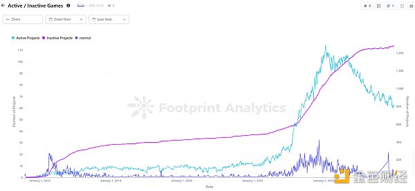 這比 2021 年 11 月的行業歷史峰值 363 億美元還差 112 億美元。為了跟蹤這一指標,Footprint Analytics 將作為 GameFi 項目的治理代幣和游戲內貨幣的代幣市值結合起來。