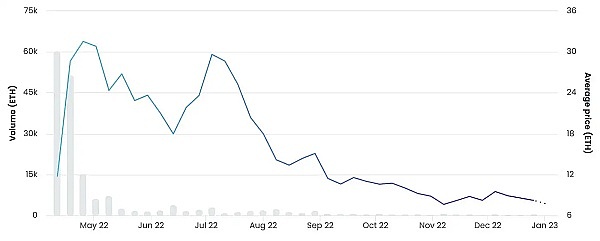 對于加密貨幣和 NFT 等高風險資產尤其如此。與許多成長型股票一樣,這些更具投機性的資產在利率上升的環境中跌幅最大。對于 NFT 來說,這意味著很多項目的流動性和交易量已經接近枯竭,就連熱門的“藍籌”NFT 項目也出現了大幅下滑。