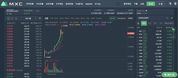 XRP/HKD+1.96%輕鏈EOCO,4月13日上線抹茶M-DAY第五期,上線當天最高漲了60倍,近期最高價達到了6.18 U,不到1月時間,暴漲了200倍。
