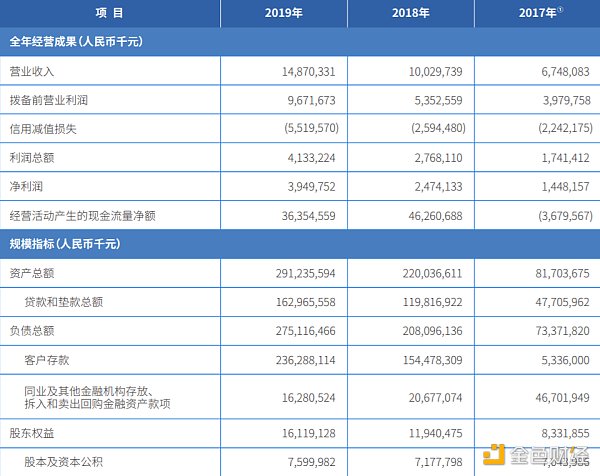 XRP/HKD+1.22%金色財經訊,4月30日,微眾銀行發布2019年年報。年報顯示,去年全年該行營收148億元,同比增長48.26%;凈利潤39.5億元,同比增長59.66%。截止2019年底,微眾銀行個人客戶突破2億人,法人客戶達90萬家,管理貸款和管理資產余額均突破4400億元;資產總額達2912億元,同比上漲32.36%。
