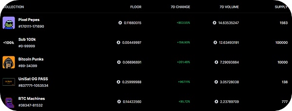 另一方面,BRC-20市場的繁榮增長,連帶著投資者對比特幣NFT的概念也愈發關注。