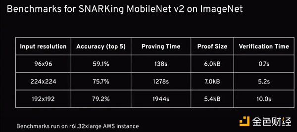 2022 年,Daniel Kang Tatsunori Hashimoto、Ion Stoica 和 Yi Sun(Axiom 創始人)提出了一種基于 Halo2 的新證明方案,首次實現了 ImageNet 數據集的 ZK 證明生成。他們的優化主要落在算術部分,具有新穎的非線性查找參數和跨層子電路的重用。
