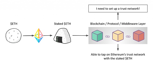 舉例來說,基于新共識協議的側鏈、數據可用層(DA)、新的虛擬機、預言機和可信執行環境等這些 Middlewares (中間件),無法利用以太坊的信任機制來打造更廣泛的去中心化服務,因此就可借助 AVS 主動驗證節點系統,打造自己的信任網路。