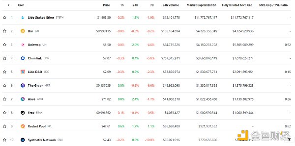 DeFi項目鎖定資產前十排名及鎖倉量 數據來源:defillama
