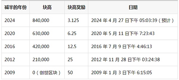鑒于比特幣區塊獎勵從 50,到 25,到 12.5,到 6.25 依次減半,這個過程和時間表被稱為比特幣區塊獎勵減半。