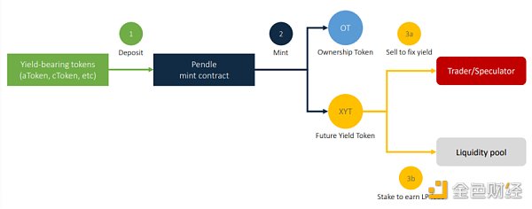 最近因為LSD的未來收益而崛起的項目Pendle Finance,最初也是為浮動利率和固定利率之間的交易設計的。用戶可以將Aave和Compound的存款憑證鎖定在Pendle的智能合約中,同時得到OT和XYT兩種代幣。OT代表到期后對抵押物的求償權,XYT代表未來收益。Aave、Compound的存款用戶可以鑄造OT和XYT,并通過出售XYT來將未來浮動的利率鎖定為固定的收益。這種做法也有弊端,無論是利率的交易者還是流動性提供者都不能使用杠桿,與傳統金融利率衍生品交易中上千倍的杠桿相比缺乏競爭力。
