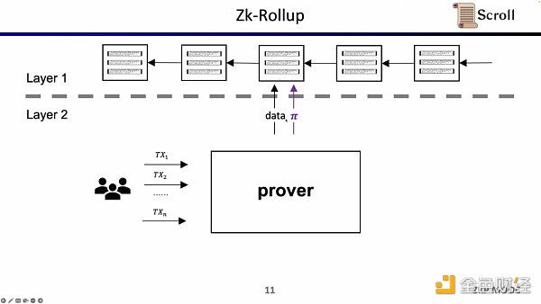 ZK-Rollup的架構中,L2 網絡只需將數據和驗證數據正確性的證明上傳至 L1,其中證明通過零知識證明電路計算而來。