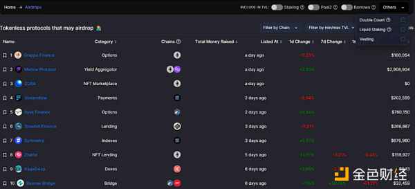 這個數據應該是鏈上數據,且不太完全,只會顯示被 DeFillama 收錄的項目