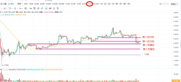大趨勢有點走弱,觀望為宜,聯動大餅。第一壓力位2.50美元,第二壓力位2.65美元,第一支撐位2.35美元,第二支撐位2.10美元。