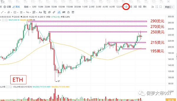 日線看昨日的“長針”,屬于主力假突破性質,日線沒有站穩趨勢線上方。BTC依然為三角整理內部運行,仍需一根中陰線或中陽線,來確定后期方向。