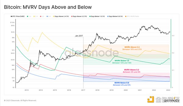 圖 4:MVRV 高于 / 低于關鍵層級的天數