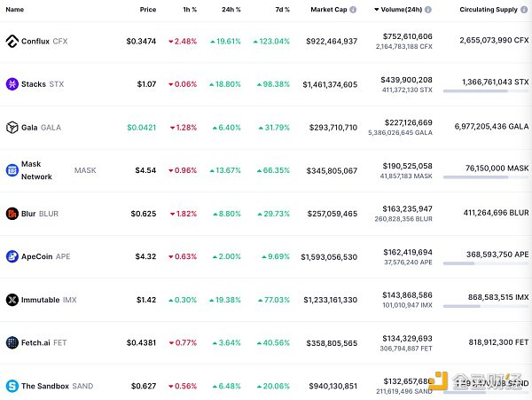 24小時NFT交易量、交易量前十項目 數據來源:Coinmarketcap