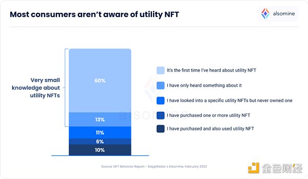 如上圖所示,實際上,大多數NFT消費者(60%)沒有聽說過具有實用價值(效益)的NFT,只有10%的少數人兌換了具有效益NFT的福利,絕大多數(92%)受訪者認為能提供各種類型的福利和效用的NFT具有優勢。