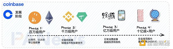 階段二:交易所敘事(千萬級用戶量),交易所成為法幣和加密貨幣互換的中心地帶,投資和投機活動會完成人們對區塊鏈網絡的初步大規模用戶教育;