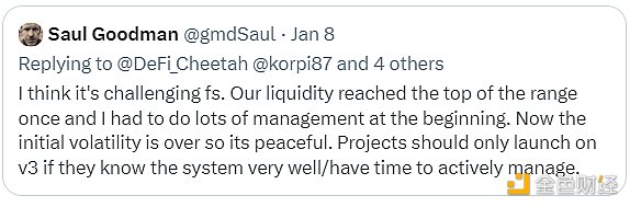 由于初始流動性較小,新代幣的價格范圍波動很大,v3中帶池的新項目需要經常調整價格區間。