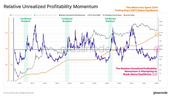 然而,我們還觀察到了自 2022 年 4 月拋售以來的第一個持續盈利期,這是市場開始向盈利狀態轉變的初步跡象。