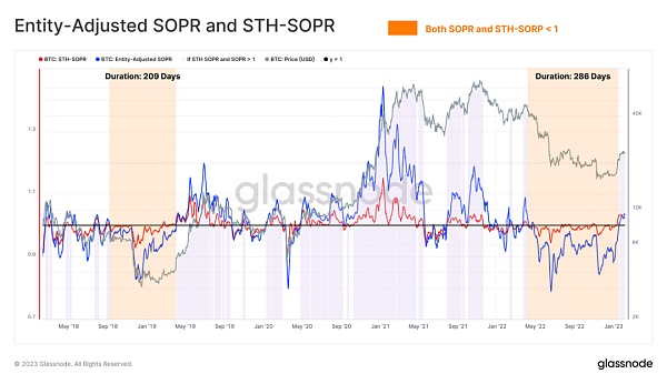 圖8:實體調整后的SOPR和STH SOPR