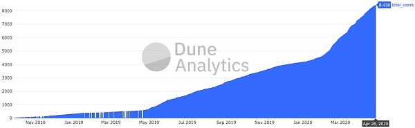 Total @dydxprotocol users over time: 8438 as of April 26.