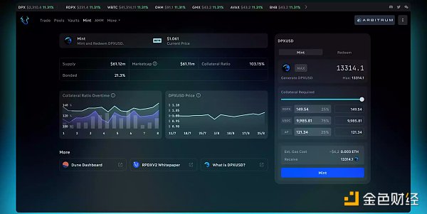 這種穩定幣通過將 rDPX 與 USDC 結合成一個流動性對來鑄造,從而以折扣的形式為鑄造它提供激勵。