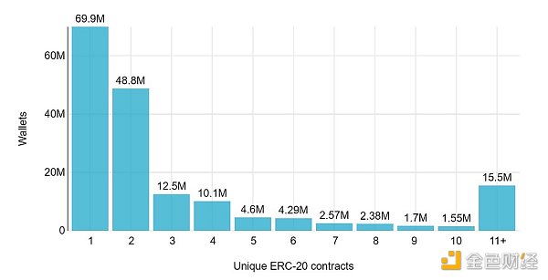 6990萬個錢包堅持使用單個代幣,這可能表明用戶傾向于以下情況: