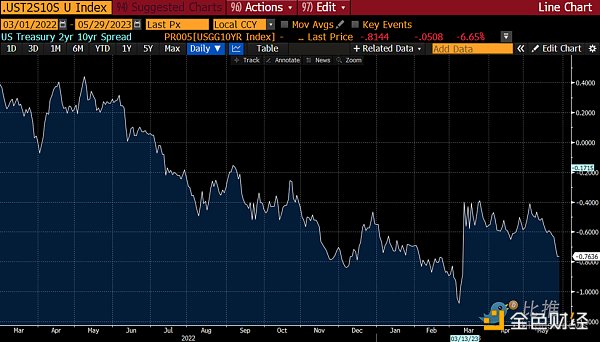 美國國債 10 年期收益率減去 2 年期收益率