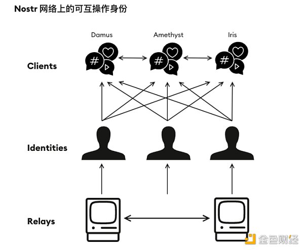 在這一年結束之前,@Fiatjaf 的想法已經成熟為他所謂的 Nostr 宣言,描述了一個開放的、抗審查的全球社交網絡。 相互發送短消息并構成網絡最低層的計算機稱為中繼。 應用程序,如社交網絡或建立在中繼之上的市場,被稱為客戶端。 它不是像比特幣那樣用公鑰標識代幣,而是用公鑰標識用戶,并且沒有底層區塊鏈。 Nostr 只是關于如何構建可互操作應用程序的一系列說明。“人們希望看到的很多東西都建立在比特幣上,”Arc 說,“實際上可以只建立在 Nostr 上。”