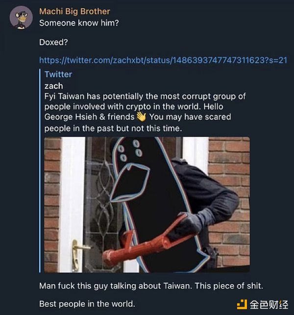 據金色財經之前報道,ZachXBT于2022年6月在Medium發布題為“22,000 ETH Embezzled and Over Ten Projects Failed: The Story of Machi Big Brother (Jeff Huang)”的調查報告,稱黃立成與超過 10 個割韭菜項目有關聯。