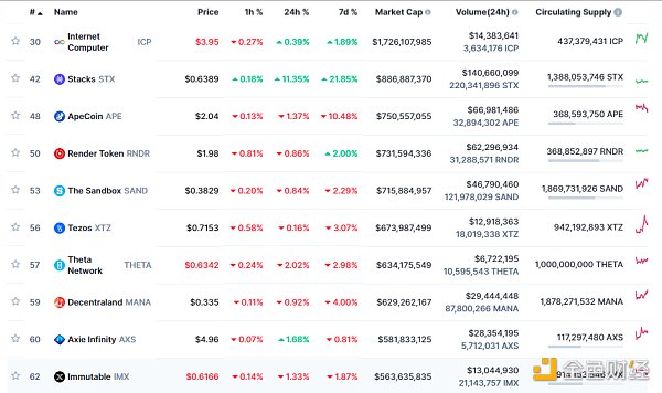 NFT總市值、市值排名前十項目 數據來源:Coinmarketcap