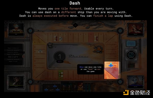 技能卡之Dash:在擲出的骰子點數外額外向前移動一格,每輪都可使用。
