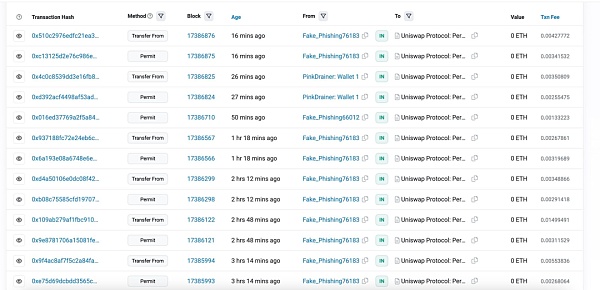 這也就意味著,只要你在2023年之后與Uniswap有過交互并授權額度給Permit2合約,你就會暴露在這個釣魚騙局的風險之下。