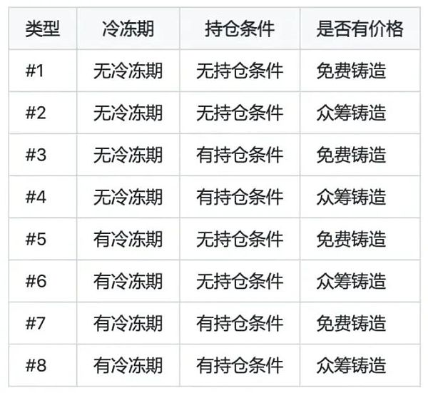 持倉條件:部署人可以設置持倉條件,用于防止女巫帳號大規模快速鑄幣。持倉資產包括NFT和其他ERC20代幣。