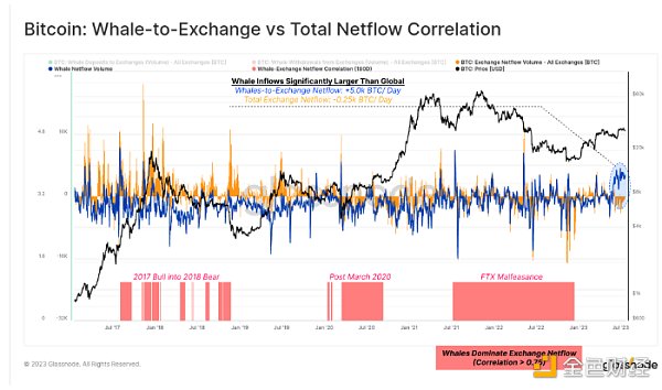 1)? 巨鯨帶來的以 BTC 計價的交易流入