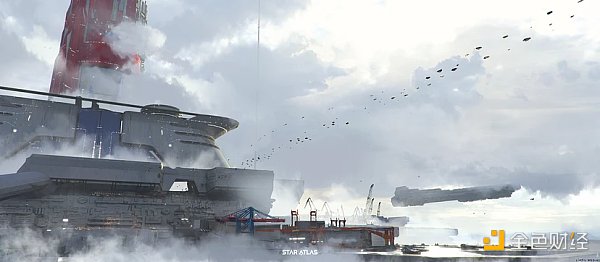 Star Atlas 最早能夠引起廣泛關注,除了宇宙題材與當時剛走紅的元宇宙概念相契合外,電影質感的精美預告片以及宏大的世界觀設定也使得它能夠在一眾相對粗糙的鏈游中脫穎而出。得益于區塊鏈和 NFT 技術,Star Atlas 能夠在游戲未發布之前就通過代幣和 NFT 銷售來募集資金。其目前推出了一個以游戲為中心 NFT 交易市場 Galactic Marketplace,并上線了基于 Star Atlas 的網頁游戲,實現了邊賺錢邊開發的模式。