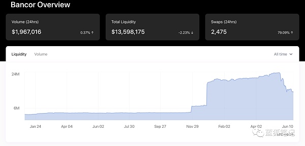 (Bancor最近24小時交易量,總流動性等數據,來源Bancor統計)