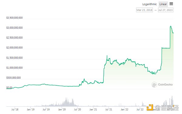 在幣安支持下,TUSD市值一路狂奔,從9億美元增長到6月的31億美元。但TUSD后院不穩,6月開始遇到麻煩,TUSD市值開始掉頭向下。