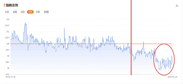 近三個月以來的美元走勢 數據來源:新浪財經加上搬磚時間周期又不穩定,搬磚黨們擔憂將人民幣換成USDT后,美元價格下跌,無利可圖,這也解釋了為什么負溢價會一直持續。所以,深究USDT持續負溢價背后的原因,我們傾向于這是大資金出場,新進資金乏力,加上近期的美元走弱,搬磚黨信心不足缺乏動力,沒能及時扳平溢價。這告訴我們一件大事情,國內馬上將陷入西方媒體和悲觀經濟學家預測的那樣,工廠停工,商店關門,股市無法交易,街上充斥著爆炸物殘留的濃濃的火藥味,兒童成群結隊去討錢,各種債主也開始到處要債,我們急于將USDT兌換成人民幣再兌換成食物,人們把這種現象稱之為過年了。