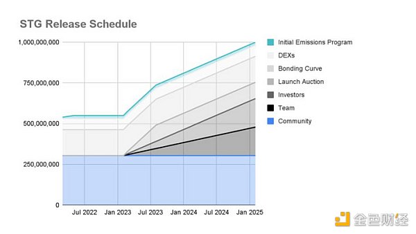 Stargate 平臺的代幣為 STG,總量為 10 億枚,分配如下: