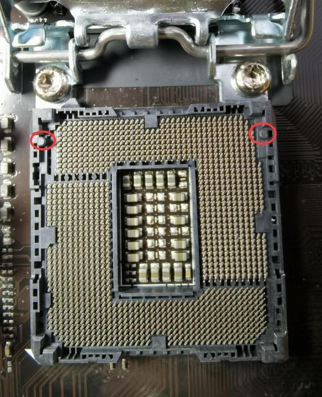 翻開后把CPU放在上面即可,不用擔憂放錯。CPU上有兩個凹槽,剛好能對應起來。放好CPU之后,再把那個蓋子蓋上,略微用點力,把那個扣子往下按,往里推。