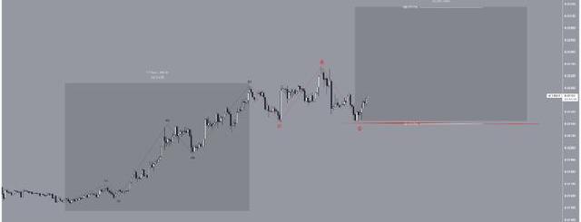 從年度低點開始衡量,VET價格已經完成了五波上升趨勢。然后,隨后的下跌看起來像一個不規則的平坦修正。